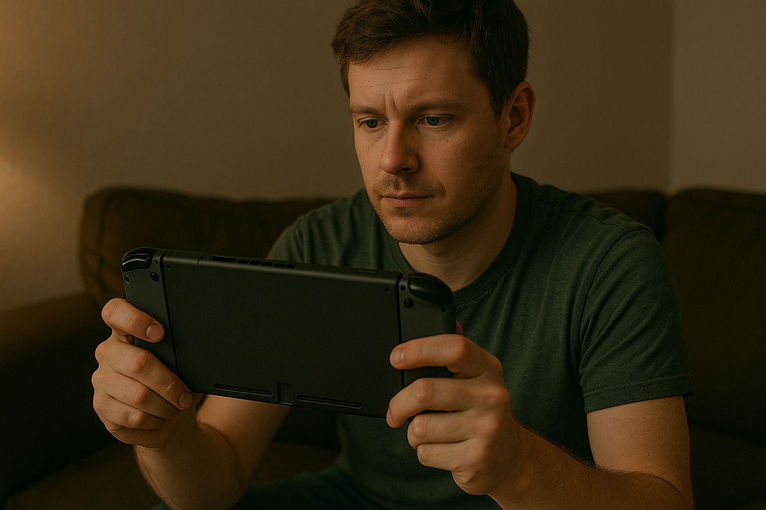 帰宅後、彼は早速ゲーム機の電源を入れる。