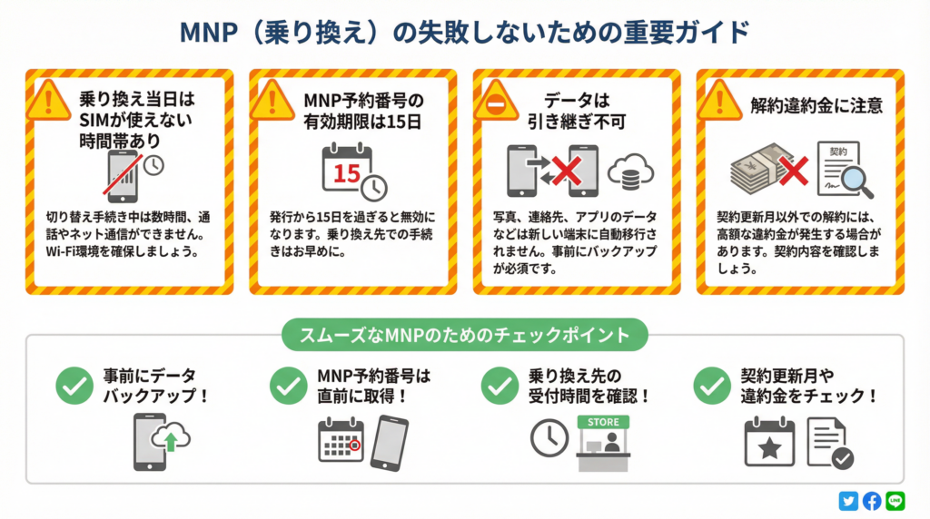 格安SIMへの乗り換えでよくある失敗とその対策を知っておくことで、トラブルを未然に防ぎ、スムーズな移行を実現できます。事前にリスクを把握し、対策を講じましょう。