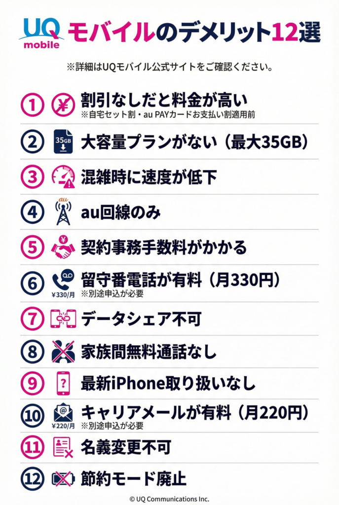 【2026年最新】UQモバイルのデメリット12選!契約前に知るべき注意点を徹底解説