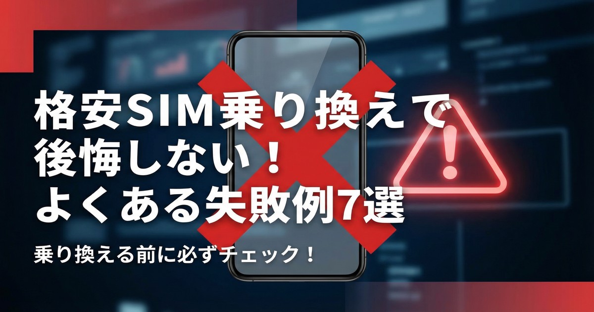 スマホ代を劇的に安くできる格安SIM。しかし、十分な準備なしに乗り換えてしまい、「思ったより速度が遅い」「かえって料金が高くなった」など、後悔するケースも少なくありません。この記事では、格安SIMへの乗り換えでよくある7つの失敗例を挙げ、そうならないための具体的な対策を徹底解説します。乗り換えボタンを押す前に、ぜひ一度チェックしてみてください。