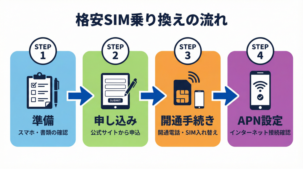 【図解】格安SIMへの乗り換え手順は4ステップだけ!